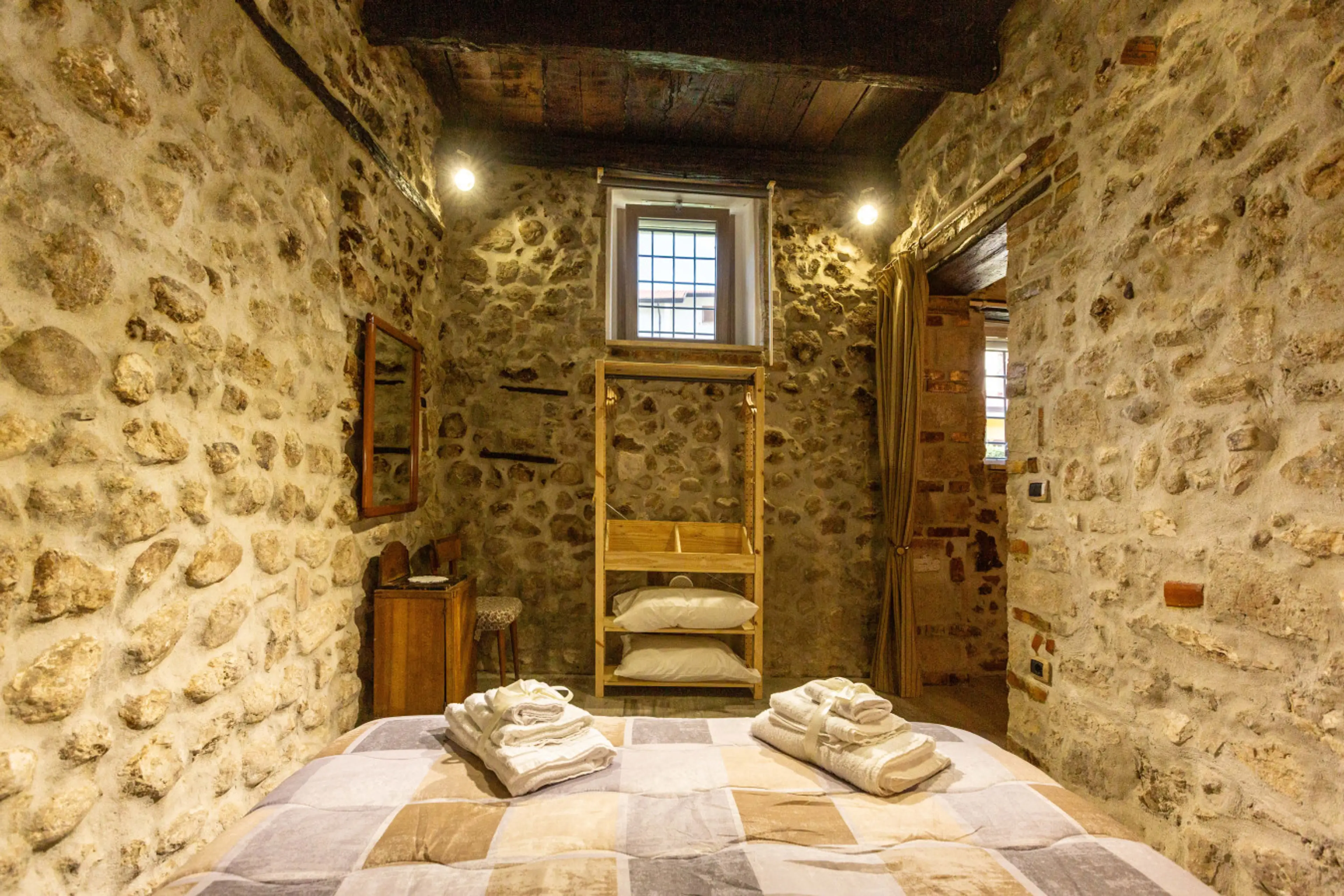 Camera da letto:letto, armadio Pietra che riporta la data 1871 data creata questa struttura. sono due appartamenti e non due camere. Ognuno ha una camera, un soggiorno, cucina e bagno. Due appartamenti con una camera da letto matrimoniale. ad appartamento. cortiletto in comune con i due appartamenti...